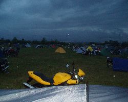 Auf dem Partyplatz war ich entsetzt als ich kaum 20 Zelte sah.Ich tröstete mich damit das ja am Abend viele Bikes aus Zagreb kommen werden. Doch gegen Abend begann es zu regnen und kaum jemand kam dazu. Dank des Regens blieben alle in der Halle und es wurde eine super Party.