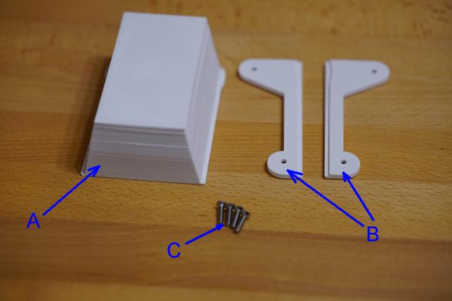 | C) | 4 | Countersunk Screw M3x12 mm | https://www.schraubenking.at/M3-x-12mm-Senkschrauben-DIN7991-Edelstahl-A2-P002506 |