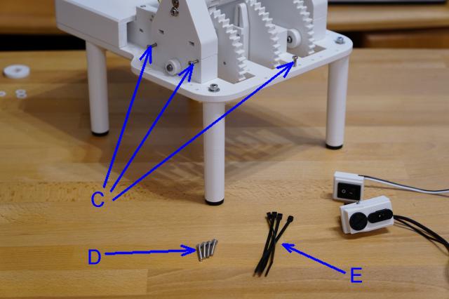 | D) | 4 | Countersunk Screw M3x16 mm | https://www.schraubenking.at/M3-x-16mm-Senkschrauben-DIN7991-Edelstahl-A2-P002443 |