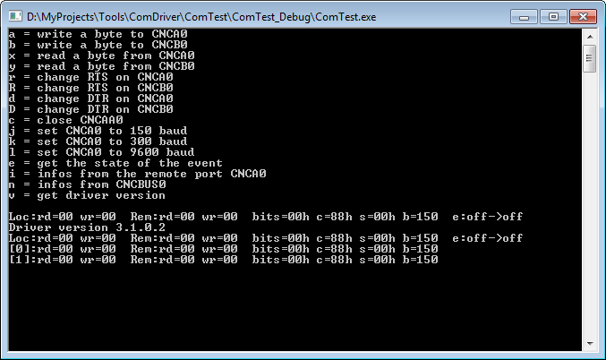 In the ComTest program press 'v' to show the driver version.